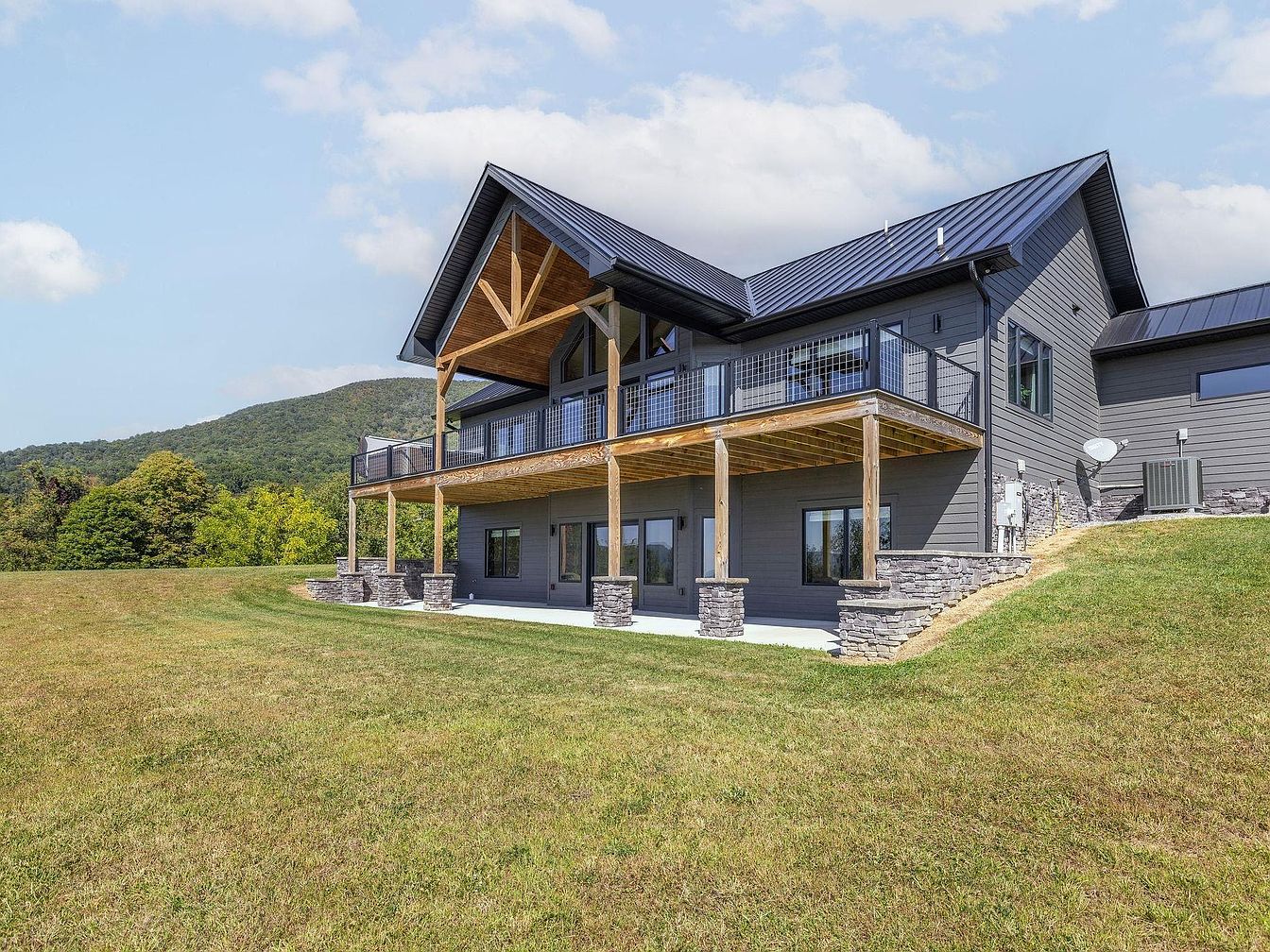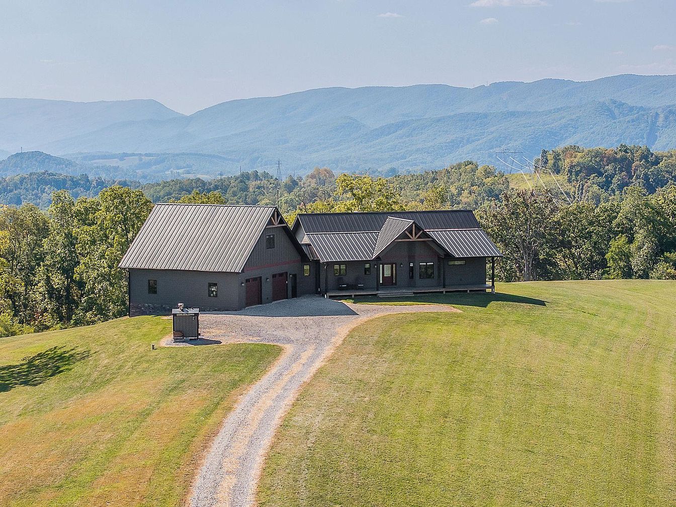 Nestled in the scenic foothills of Pembroke, Virginia, Serenity Ridge is a modern custom-built residence completed in 2021, offering five bedrooms and three baths across expansive square footage, set on a 365-acre estate. This property melds contemporary architecture with its historical context near Jefferson National Forest, promoting outdoor recreation through its trails and mature woodlands. Priced at $2,295,000, the home boasts a chef’s kitchen, luxurious primary suite, and an oversized garage, catering to both comfort and practicality. Enhancements include a saltwater hot tub on the deck, maximizing enjoyment of breathtaking mountain views. With proximity to Blacksburg and Roanoke, this residence is ideal for those seeking both tranquility and accessibility.
