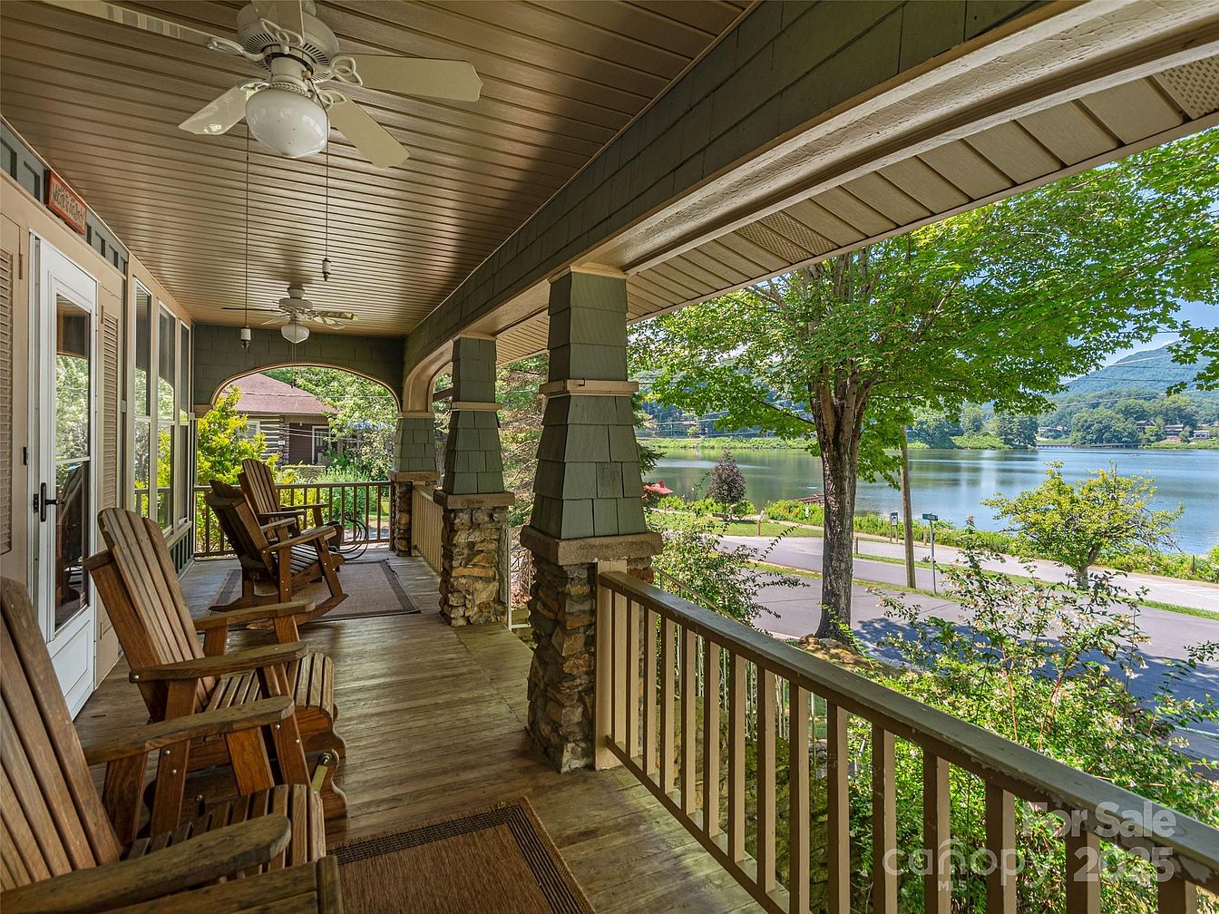 Nestled in scenic Lake Junaluska, NC, this historic arts and crafts style home epitomizes early 20th-century architecture with its stonework, high coffered ceilings, hardwood floors, and signature front porch offering breathtaking lake and mountain views. Built as an original gem in this cherished resort community, the main residence features 5 bedrooms, 3 baths, an adjacent library, stone fireplace, and modern kitchen with granite countertops, plus a separate 1-bed/1-bath carriage house. Renovated and pre-inspected with many improvements completed, this property boasts a custom outdoor living space with a cathedral ceiling shelter and cobblestone drive. Priced at $1,100,000, it comes fully furnished and is just minutes from downtown Waynesville, Asheville, the Blue Ridge Parkway, and the Smoky Mountains.