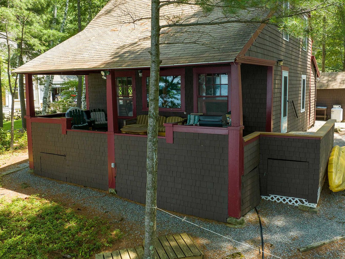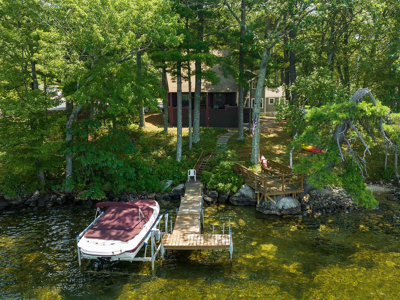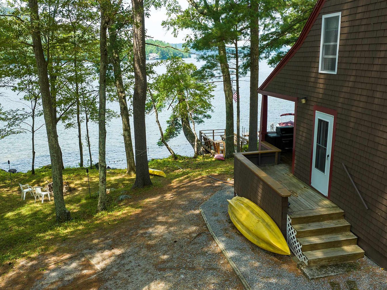 This charming, shingle-sided camp on Lake Sunapee, located in Newbury, NH, has been cherished by the same family since its 1911 construction, making it a rare century-old gem with deep historical significance. Its classic early 20th-century cottage architecture, characterized by gable roofs and rustic wood detailing, harmonizes beautifully with its natural lakeside setting. Featuring four bedrooms, this seasonal property offers 90 feet of prime waterfront, a deck over the water, and a dock—ideal for enjoying sunsets and sandy-bottom swimming. The inviting front porch and wood-burning fireplace evoke timeless New England camp traditions. Listed for $1,750,000, this unique property is set on a generous plot, with total square footage corresponding to its substantial accommodations, although recent renovations are not specified.