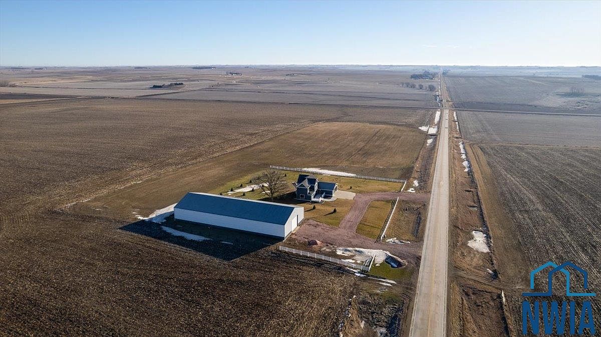 This stunning 1907 farmhouse, located on over 3.5 acres in Kingsley, Iowa, exemplifies a blend of historical allure and modern convenience. Thoroughly renovated in 2023, it features a fresh architectural style while retaining its original farmhouse charm. The property boasts 2,232 sq ft of living space, including master suites on both floors, a spacious eat-in kitchen, and a cozy living room. An expansive 992 sq ft attached garage complements a recently constructed, fully equipped Morton building featuring climate control, which serves as a versatile workspace. Priced at $945,000, this residence offers a unique opportunity for buyers seeking both beauty and functionality.