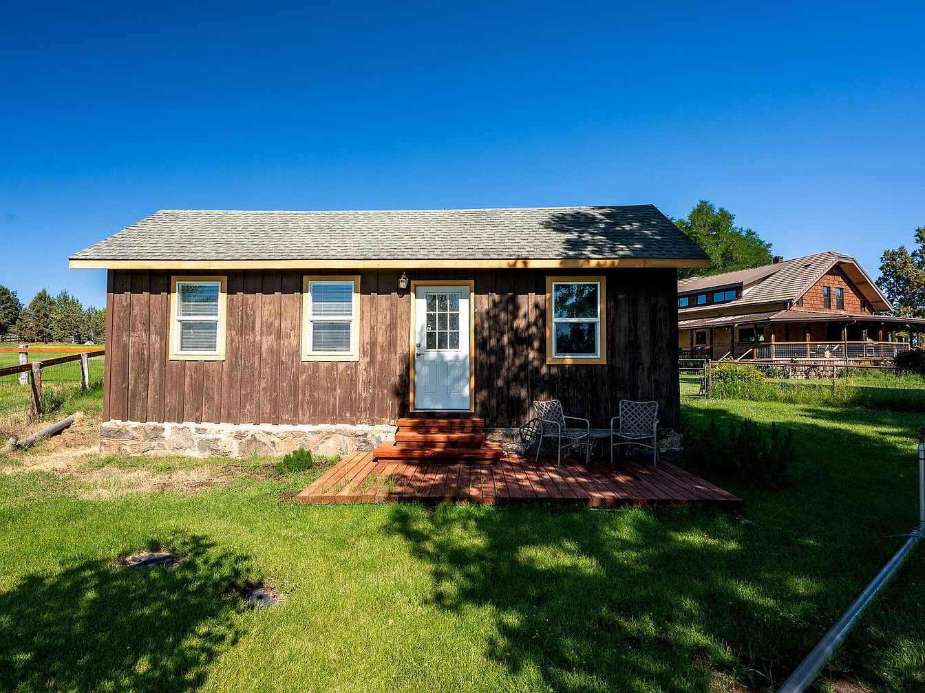 Discover a stunning piece of Bend history with this meticulously updated 1929 stone farmhouse on 2.42 acres, featuring .9 acres of senior COID water rights. First homesteaded in 1911, this 4-bed, 3.5-bath residence exhibits a blend of classic craftsmanship and modern amenities, including two primary suites and updated systems. The property also hosts a revitalized original cabin and a 5-bay garage with a workshop. Offering a wraparound covered deck with views of the orchard and irrigation pond, it’s an inviting retreat just minutes from town. Recently adjusted to $1,499,000, the unique property provides opportunities for a private homestead or small farm.