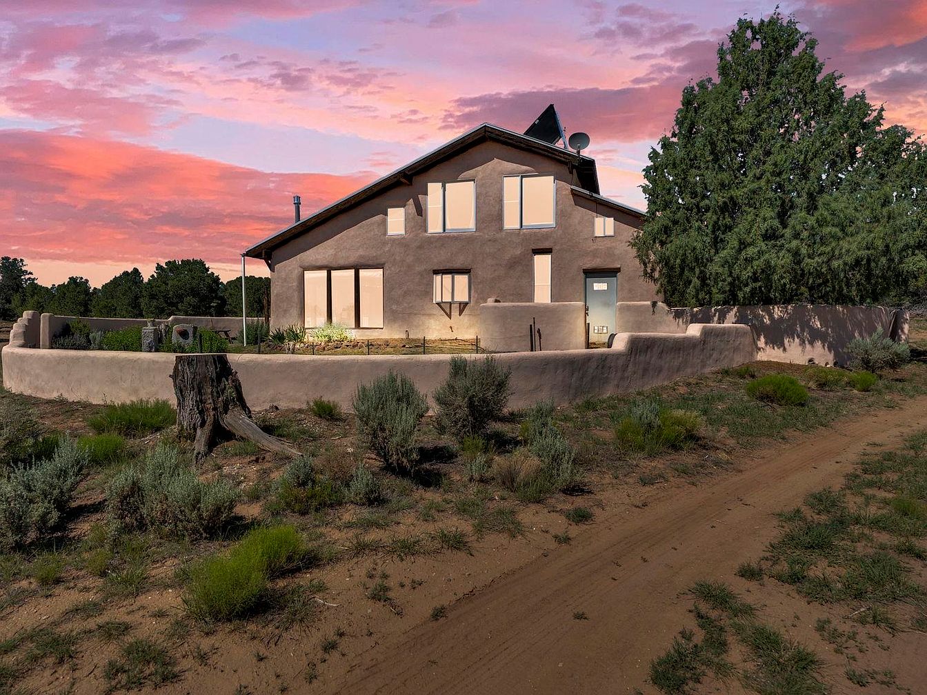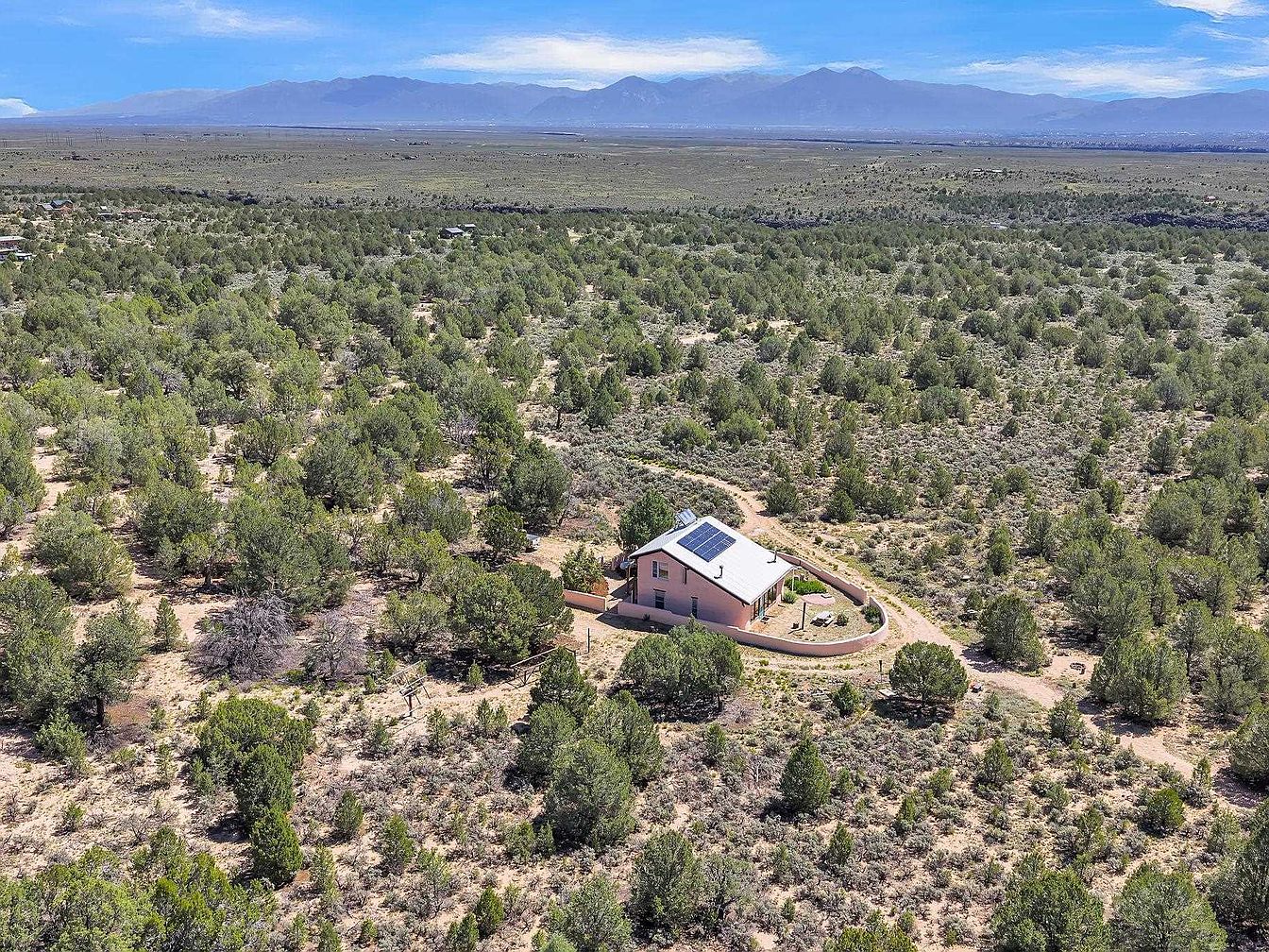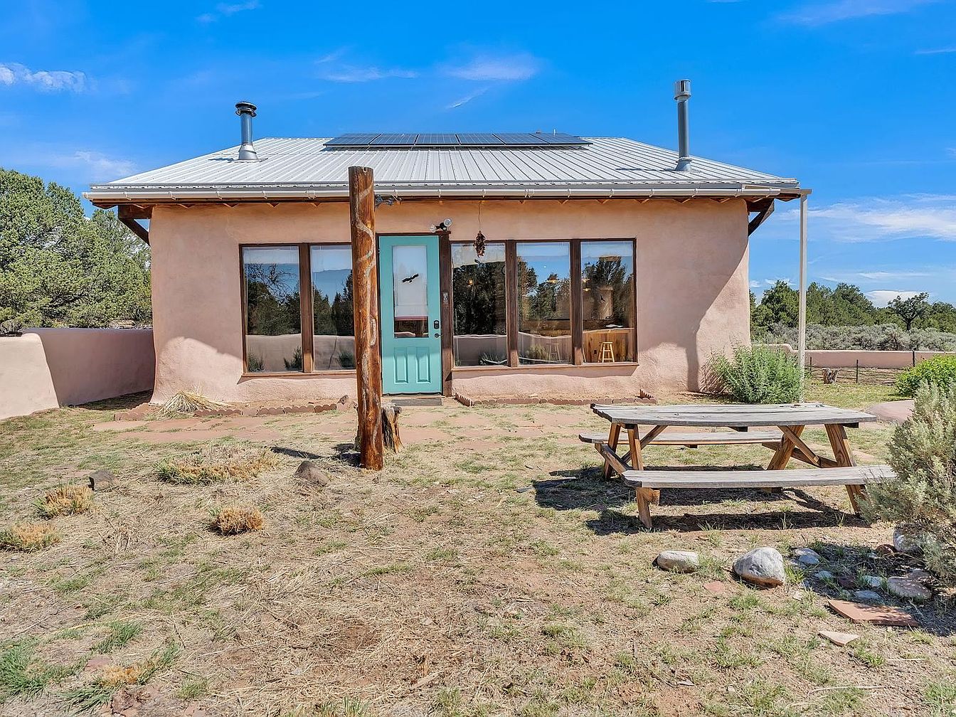 This extraordinary off-grid Territorial-style home in Carson, New Mexico, perfectly blends historical significance with modern sustainable living on 20 acres of piñon and juniper forest. Built to harness passive solar warmth, it features massive beams, flagstone and tile flooring, a chef-inspired kitchen, and open-concept living ideal for family life. Recent upgrades include brand new lithium solar batteries and a private well, making it a rare eco-friendly opportunity. Enjoy scenic views of Taos and the Sangre de Cristo Mountains from expansive windows and the lush courtyard. The property also includes a versatile straw bale casita, abundant wildlife, and proximity to the Rio Grande. Listed at $449,000, this sanctuary offers unmatched privacy and a unique historical charm.