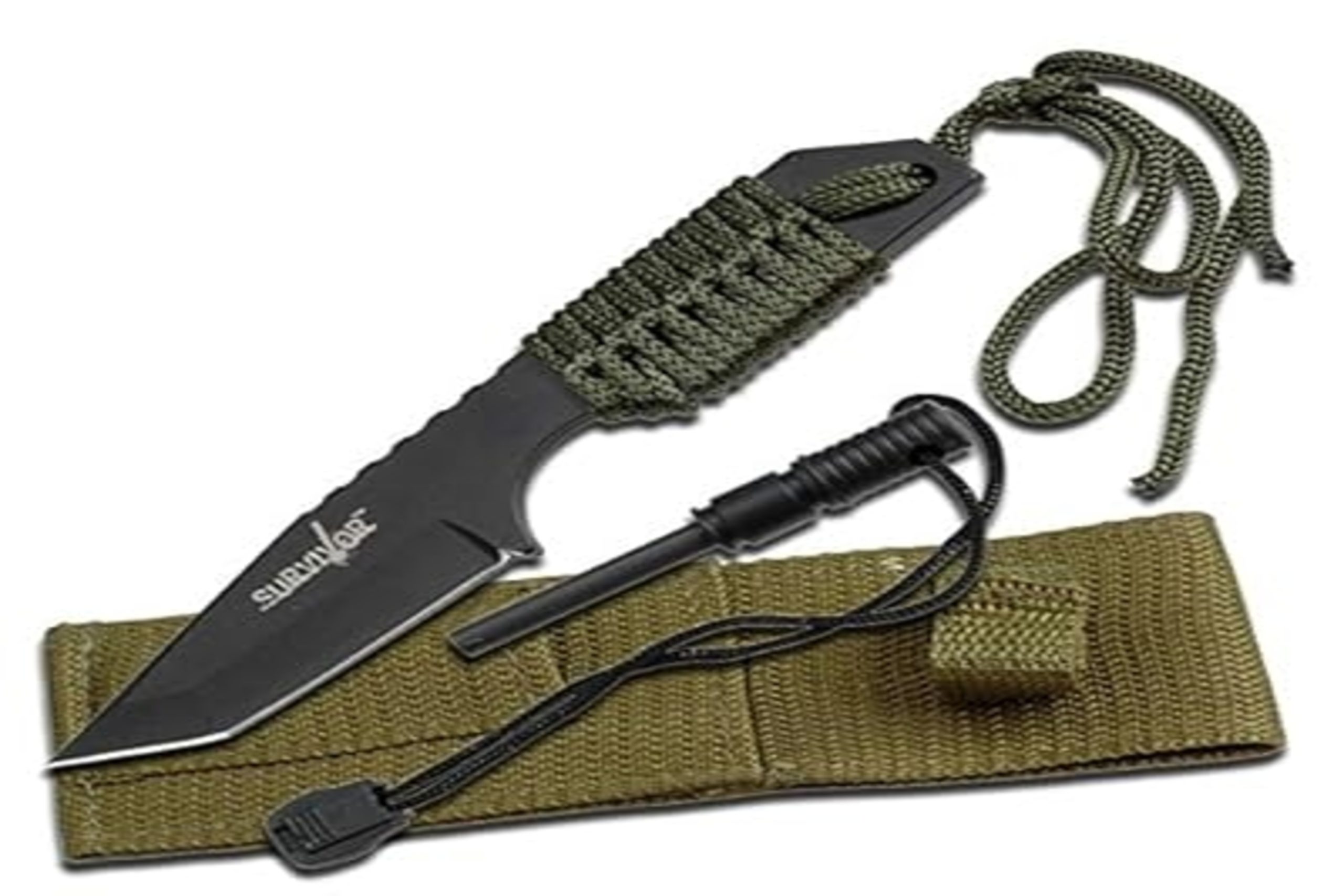 The Survivor HK-106320 presents itself as a fully equipped field companion. It comes with a serrated spine, a compass-topped handle, and a tactical nylon sheath with more pockets than some camping backpacks. On paper, it reads like a thoughtfully outfitted multi-purpose blade. Reality is considerably more modest. The unmarked stainless steel blade rarely exceeds 50 HRC, and the edge geometry is ground too thickly behind the bevel, meaning it wedges rather than slices cleanly through soft material. Independent tests report that the blade dulls visibly after approximately 10 to 15 cuts through green wood, a serious limitation for any wilderness scenario. The handle-integrated compass is decorative at best and reads up to 15 degrees off magnetic north under standard conditions. The survival kit stored inside the hollow grip includes items so small and fragile that they offer marginal real-world utility. Weighing in at around 12 ounces with sheath, it adds meaningful pack weight without returning meaningful performance. It’s a novelty item priced around $25 that consistently over-promises and underdelivers.