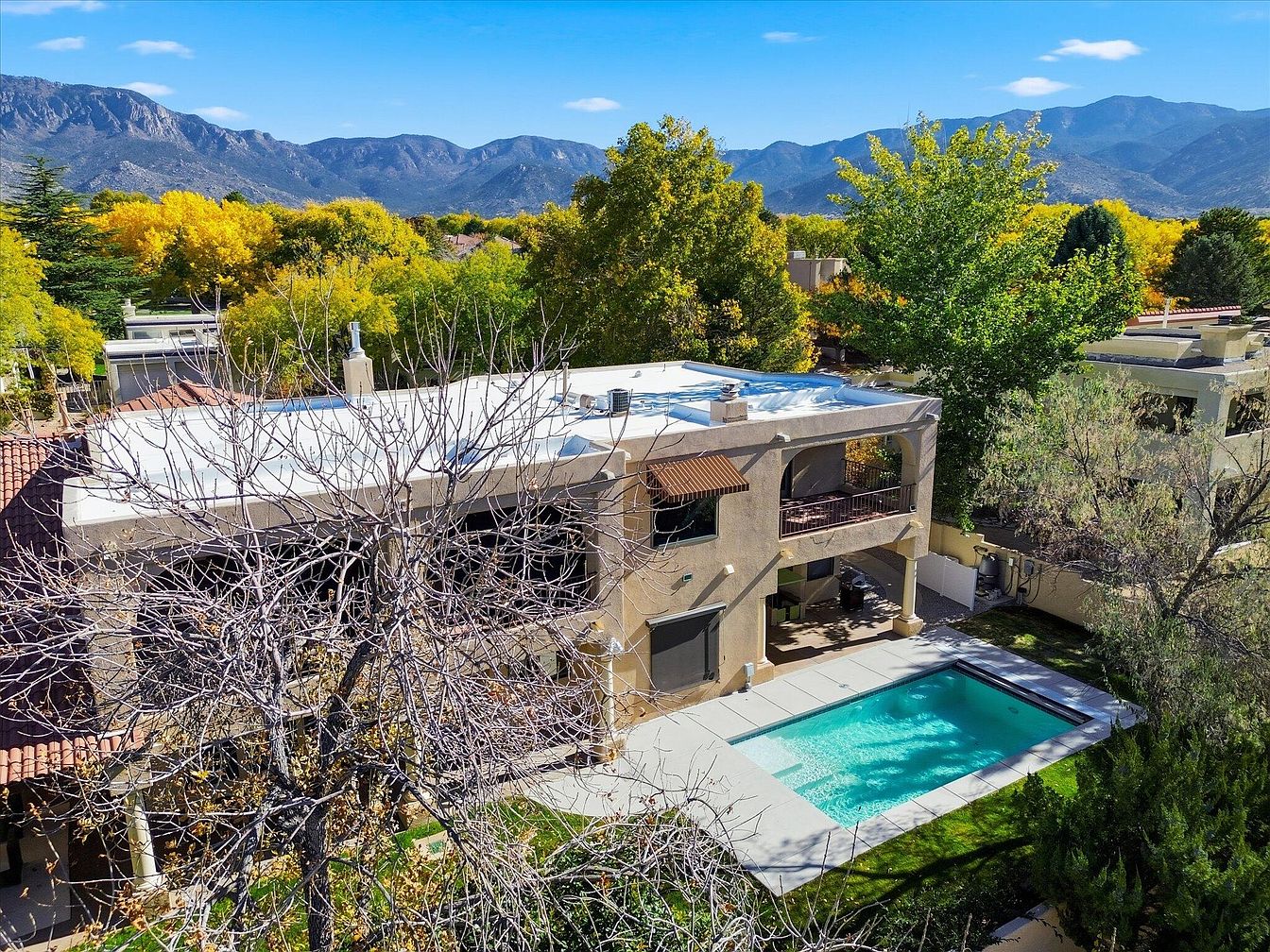 This exquisite home in Albuquerque, NM, combines modern luxury with historical charm, likely built in the early 20th century. Notable for its Pueblo Revival architectural style, it features high ceilings, Venetian plaster walls, and hand-chiseled stone finishes. Located on a serene tree-lined street near a cul-de-sac and a country club, the property has undergone extensive renovations, enhancing its appeal. Currently listed at $1,125,000, it boasts a generous plot area with ample outdoor space and a total square footage designed for comfort. Key highlights include three large bedrooms, a formal dining room, and an impressive kitchen equipped with dual ovens and granite countertops, making it an exemplary choice for sophisticated living.