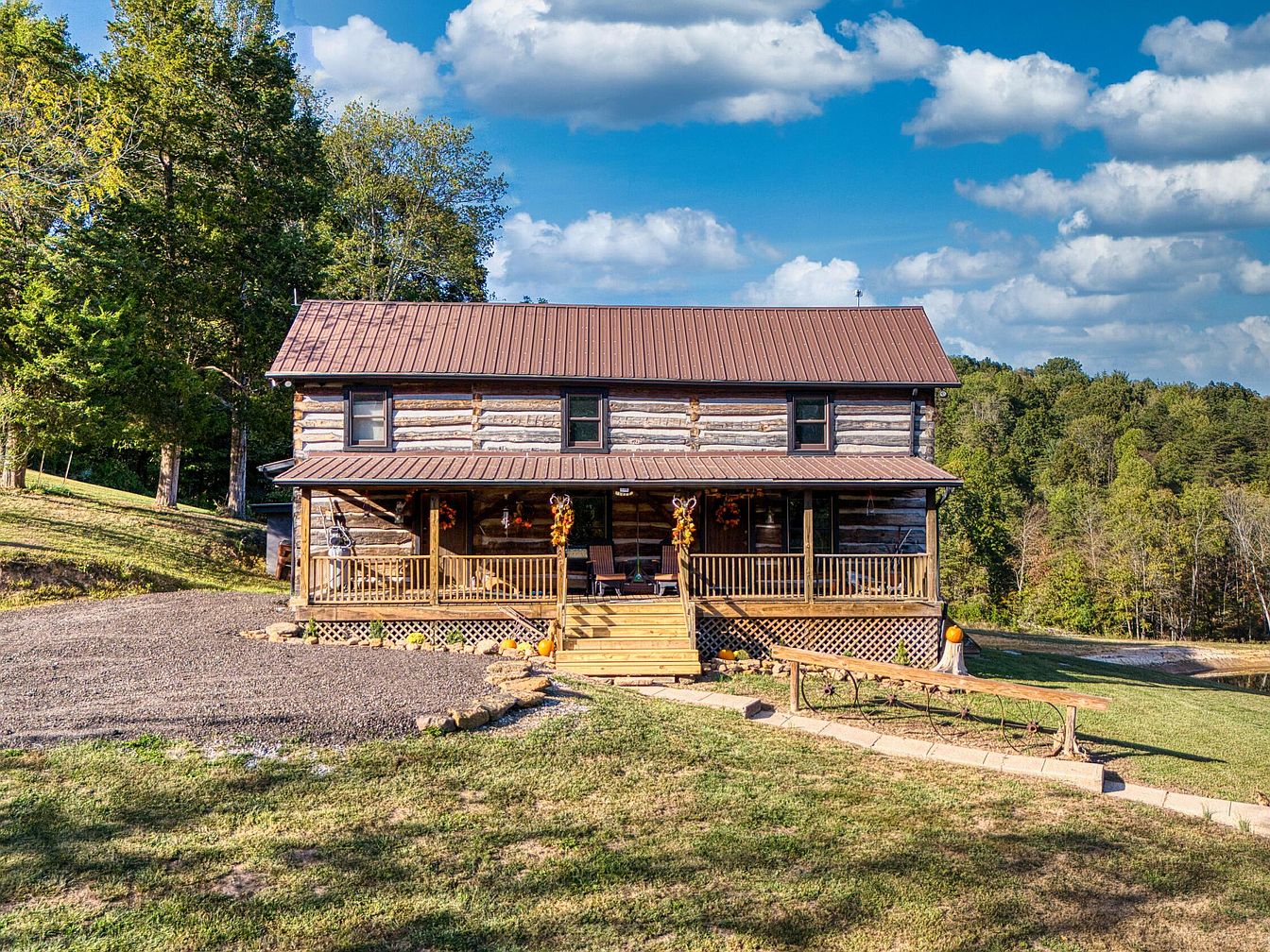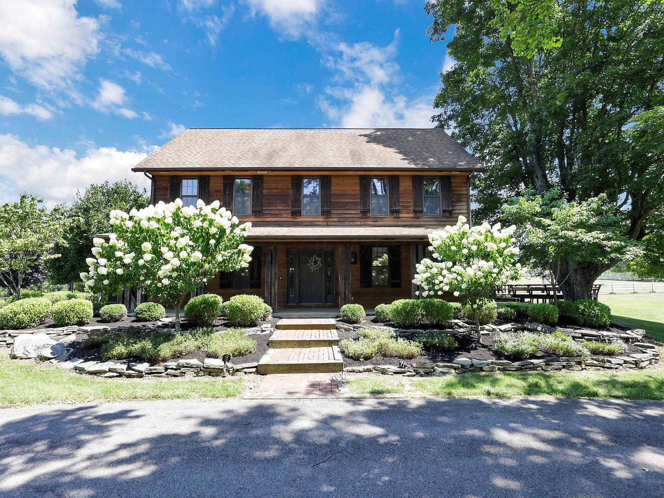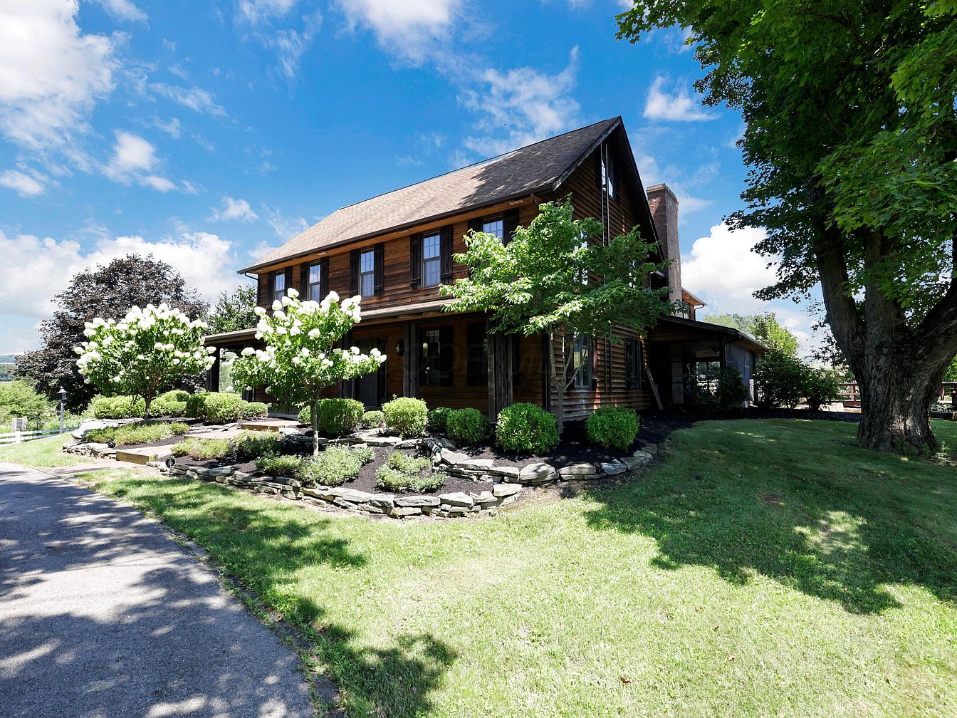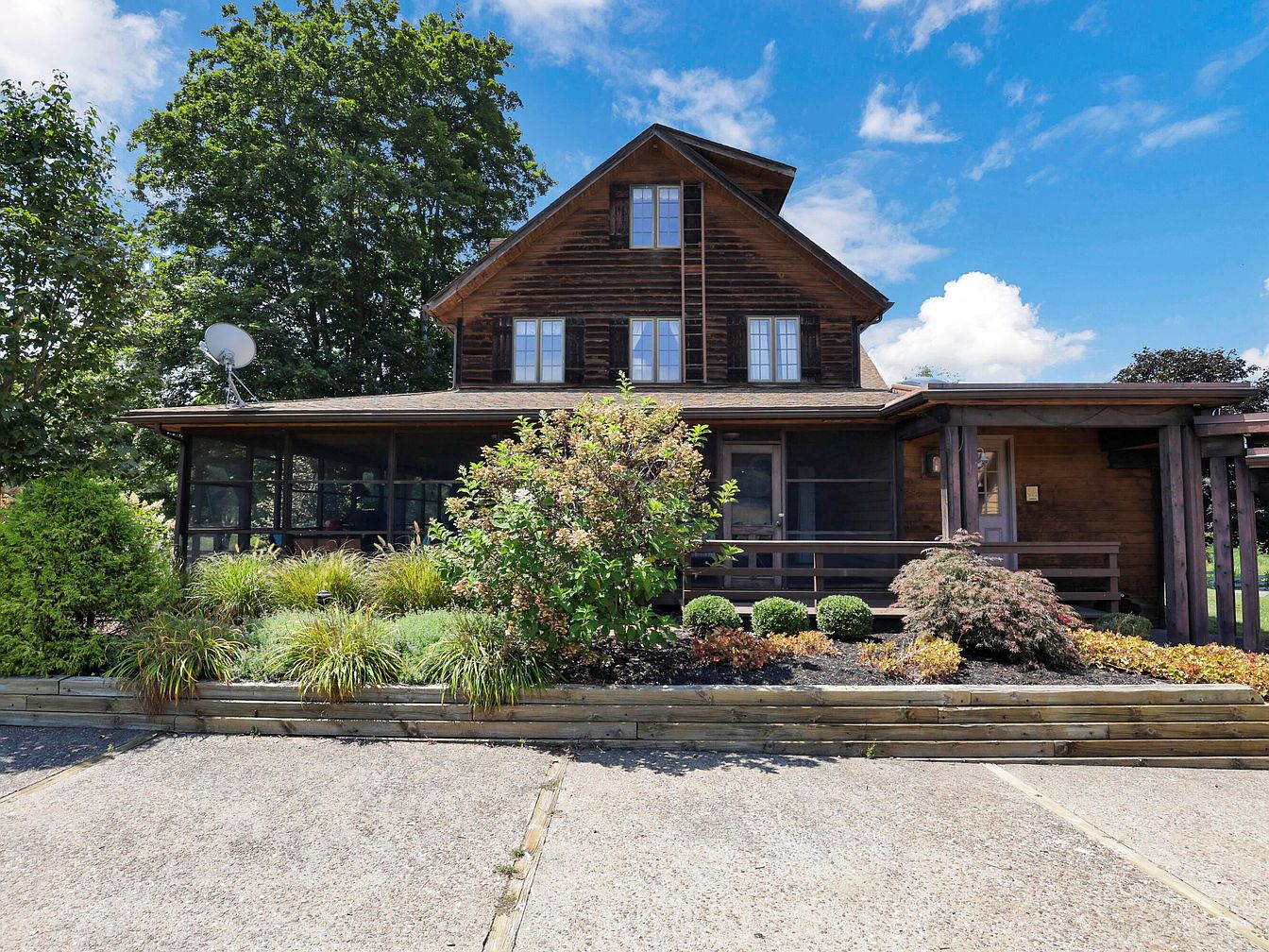 This remarkable log cabin estate, built in 1905 in Newark, Ohio, harmonizes historical significance with modern luxury. Featuring classic American log cabin architecture, the home sits on nearly 16 scenic acres, offering panoramic countryside views and resort-style amenities such as a heated in-ground pool, pool house, hot tub, and a basketball court. Thoughtful recent renovations embellish the interiors, including new granite kitchen countertops, while original hardwood floors and period craftsmanship preserve its century-old character. With geothermal heating/cooling and an average utility cost of just $500/month, it’s both comfortable and efficient. The property, listed at $1,110,000, boasts a four-car garage, workshop, horse barn, two ponds, an expansive deck, and generous living space designed for both family life and entertaining.