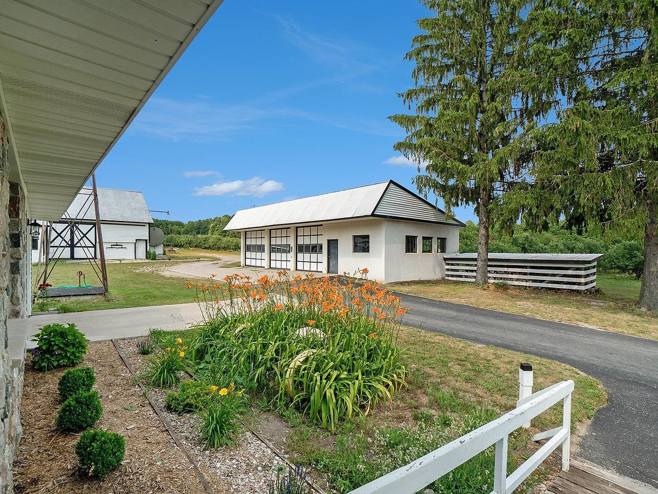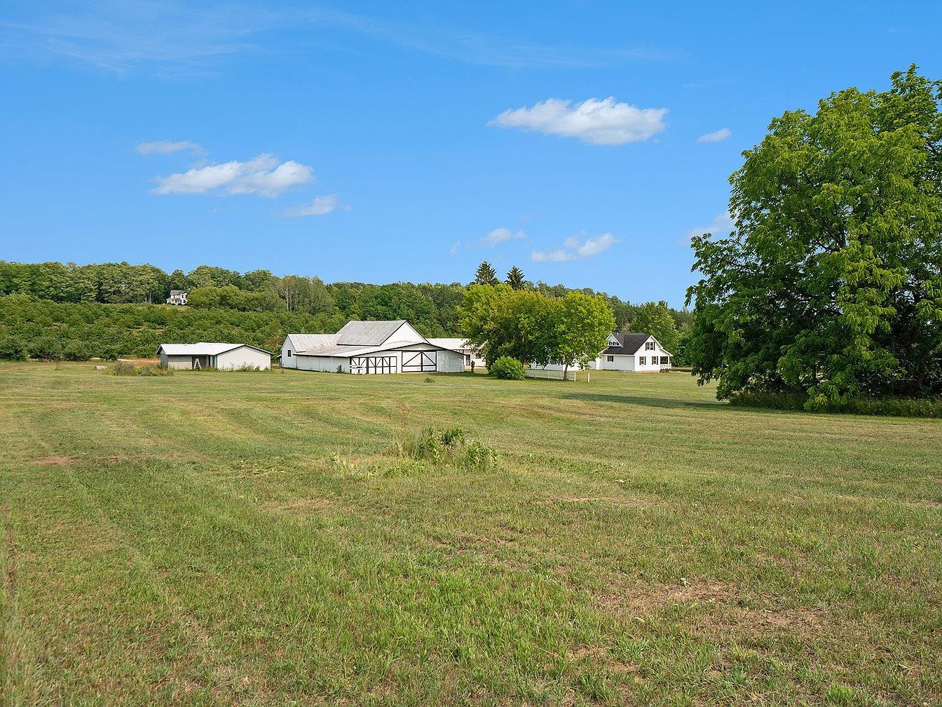 This quintessential century home, located in Cedar, MI, stands as a beautifully updated farmstead on a sprawling 217-acre plot, capturing the essence of Leelanau County’s agricultural and historical legacy. The iconic farmhouse, likely built around the early 1900s, features traditional American farmhouse architecture with its gabled roof, large front porch, and practical window placements. Recent tasteful renovations blend charm with modern comfort, while the property retains its historical significance through continuous farming use—now a vibrant cherry and apple orchard. With multiple outbuildings, a warehouse, and worker’s quarters included, the estate’s potential spans agri-tourism, equestrian, or event venue uses. Listed at $1,700,000, it is preserved by a perpetual conservation easement, ensuring its agricultural beauty endures.