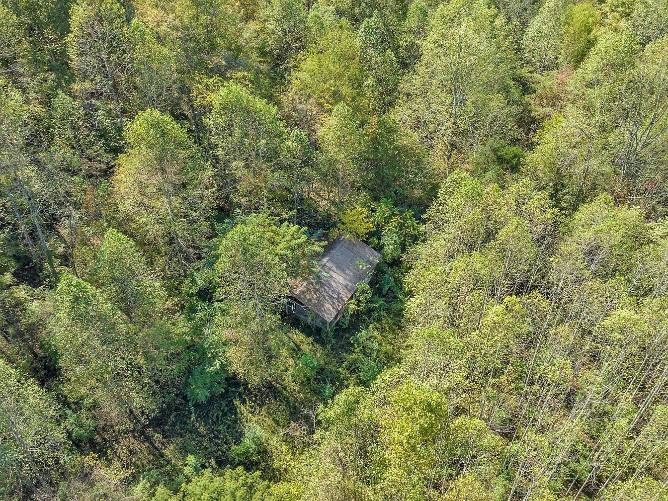 A secluded structure nestled amid dense green foliage, the building’s roof is partially visible, suggesting a rustic charm. Surrounding trees, adorned in vibrant shades of green, create a tranquil, natural canopy, indicating a harmonious relationship with nature. The juxtaposition of the hard edges of the house against the soft, organic shapes of the surrounding trees evokes a sense of peace and retreat. Sunlight filters through the leaves, casting dappled shadows on the ground. This serene setting highlights the allure of nature-centric living, showcasing a perfect escape from urban life, ideal for relaxation and reflection.