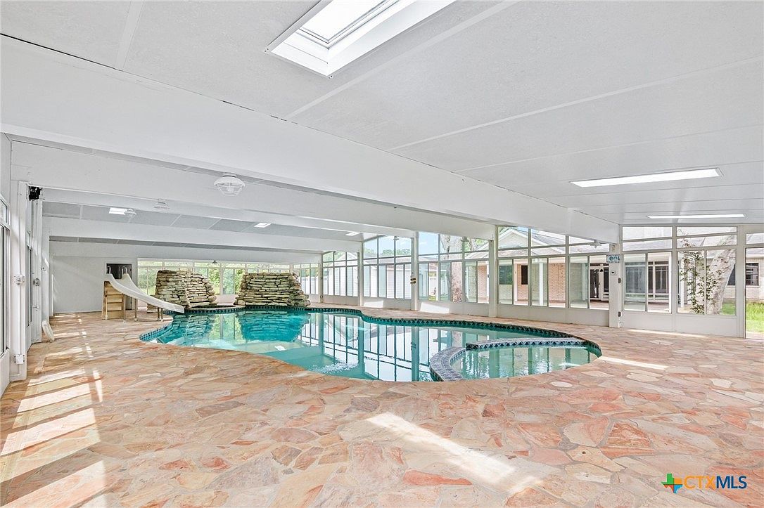 This striking 4-bedroom century home, nestled on 5.1 acres just outside Edna, TX, boasts a rich history and modern design. Built in an unspecified year, it underwent extensive renovations exceeding $1.1 million, enhancing both its aesthetic and functional appeal with new amenities and energy-efficient upgrades. The property features a remarkable swimming pool within a spacious pool house, perfect for year-round enjoyment, alongside a versatile 40′ x 80′ outbuilding ideal for storage or business opportunities. Recent renovations include top-quality finishes and essential upgrades, making it a seamless blend of comfort and charm. Listed at $695,000, this estate represents an exceptional value in the current market.