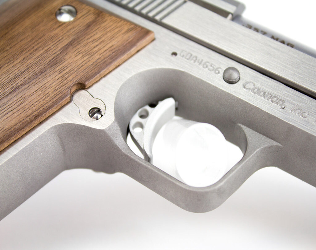One of the first challenges new Coonan owners notice is the firmness of the magazine springs. Loading to full capacity may feel demanding until the springs loosen slightly with repeated use. Once broken in, the process becomes significantly easier and far more intuitive. Shooters often learn to use a steady, deliberate push rather than relying on speed. Though initially frustrating for some, this quirk reflects the pistol’s design intent of supporting powerful loads. Over time, it becomes part of the gun’s familiar routine.