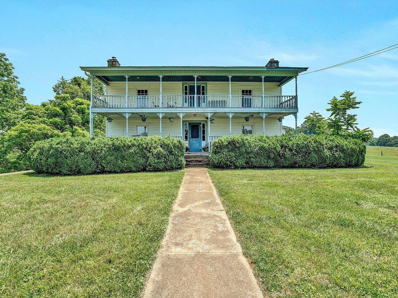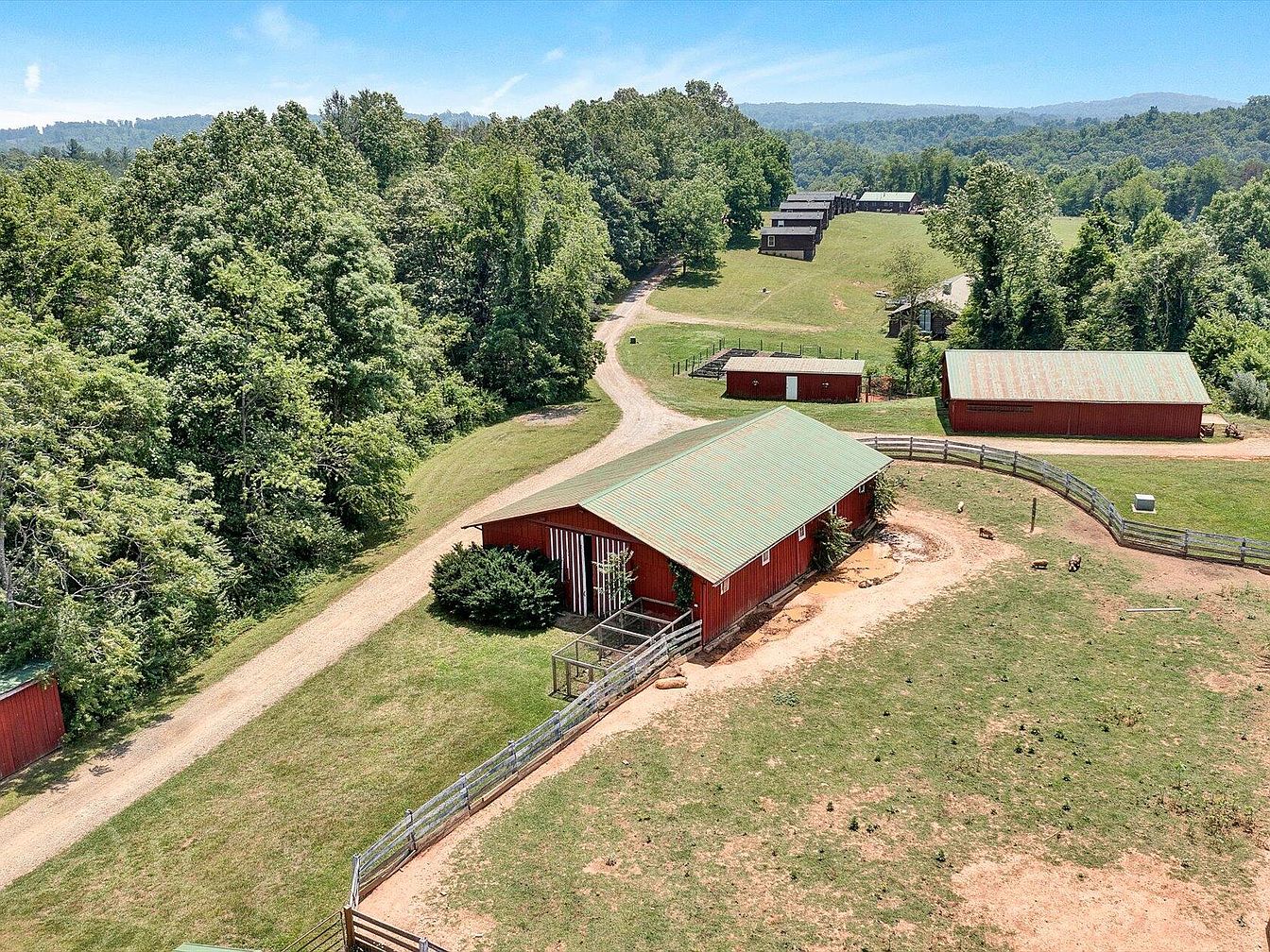 This rare 283-acre estate in Ferrum, VA, formerly a tennis camp, boasts significant historical charm and natural beauty, featuring scenic Smith River frontage and stunning mountain views. The main house includes 5 bedrooms and 5.1 baths crafted in a classic architectural style with a brick exterior, while additional accommodations include a 2BD/2BA cottage and eight private cabins, each with two full baths. Recent renovations enhance the property’s appeal, complemented by a large pavilion with a commercial kitchen, a stocked pond, and two barns equipped for horses. Listed at $2,900,000, it offers numerous possibilities for a corporate retreat or event venue amidst its expansive 283 acres.